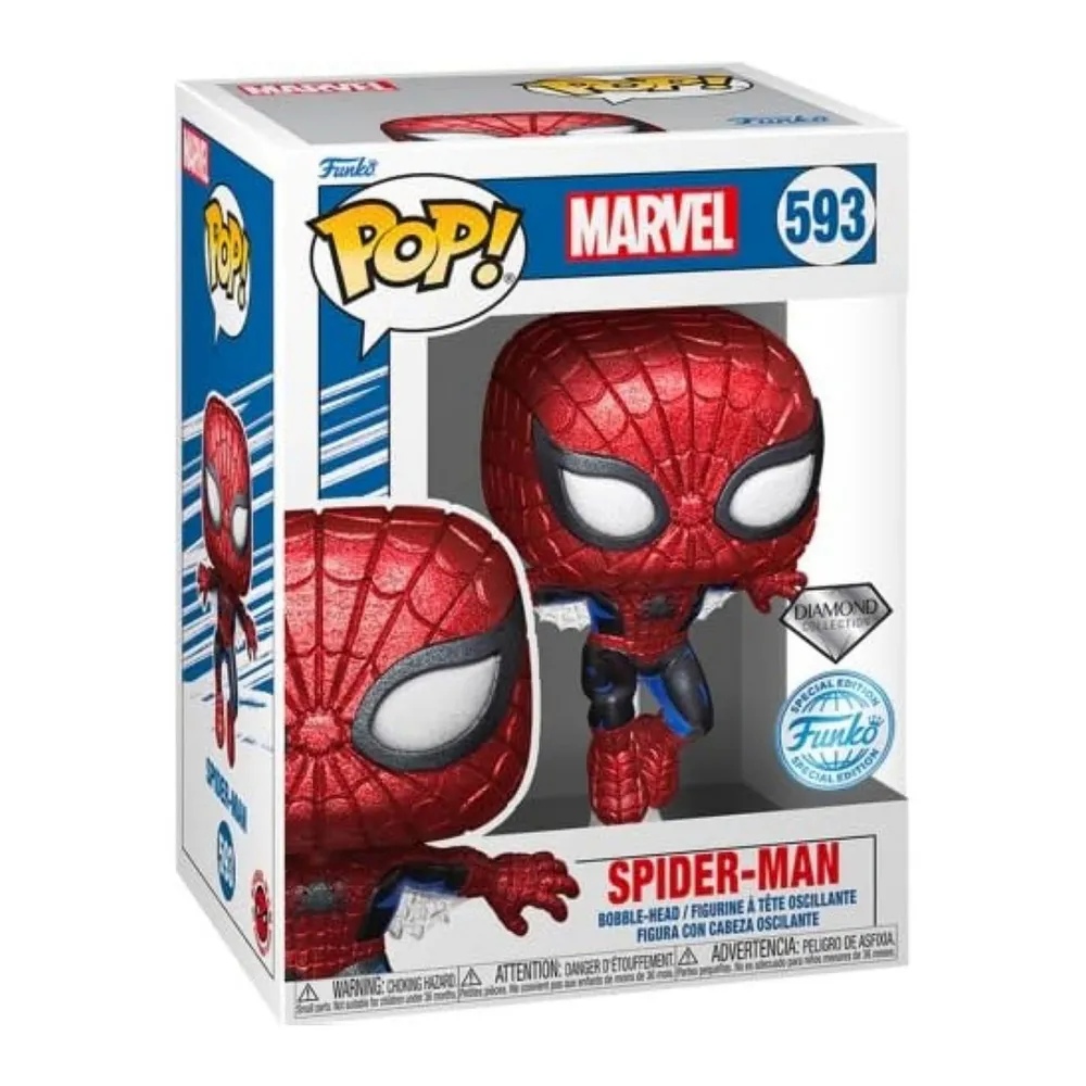 La Funko Pop! n°593 de la collection Diamond célèbre le 80ᵉ anniversaire de Spider-Man en rendant hommage à sa toute première apparition. Cette figurine en vinyle de 9 cm environ, présente Spider-Man dans son costume iconique, agrémenté d’une finition pailletée « Diamond » qui lui confère un éclat particulier. Elle capture le super-héros en pleine action, s’élevant dans les airs avec des toiles sous les bras, rappelant sa posture dynamique des premiers comics. Cette édition spéciale est un incontournable pour les collectionneurs et les fans de l’univers Marvel.