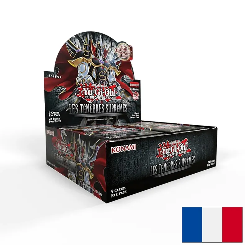 Les Ténèbres Suprêmes contient un total de 101 nouvelles cartes, dont un tout nouvel archétype en avant-première mondiale à ne surtout pas rater. Ce booster prolonge également les Célébrations du 25e Anniversaire en incluant 25 cartes Secrètes Rares Quart de Siècle, y compris 1 carte spéciale !