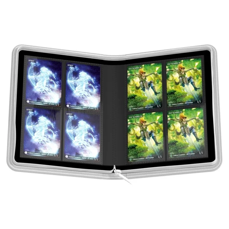 - Portfolio haute qualité avec couverture résistante et flexible, offrant 20 pages à 8 poches re-liées pour toutes les cartes de jeu de taille standard et mini.